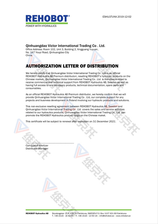 瑞典REHOBOT液壓AB公司的商業(yè)和技術(shù)支持有充分的權(quán)利獲得任何必要的產(chǎn)品,技術(shù)文件,備件和耗材。